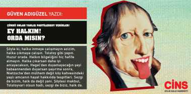 Şöyle ki; halka inmeye çalışmayın azizim, halka çıkmaya çalışın. Tolstoy gibi yapın. Huzur orada. Halkın bilgeliğini hiç hafife almayın. Halka çıkarsan daha iyi anlayacaksın, Hegel’den duyamayacağın şeyi babaannenden …